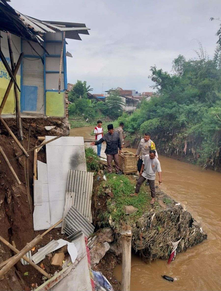 Kab.Bandung, Parahiangannews- Bhabinkamtibmas Desa Ciparay Polsek Ciparay Polresta Bandung Bripka Kokon Nurjaman melaksanakan kegiatan pengecekan 2 rumah yang tergerus aliran Sungai Cirasea, yang berlokasi Kampung Bojong, RT 02, RW 06, Desa Ciparay, Minggu(13/4/2025).