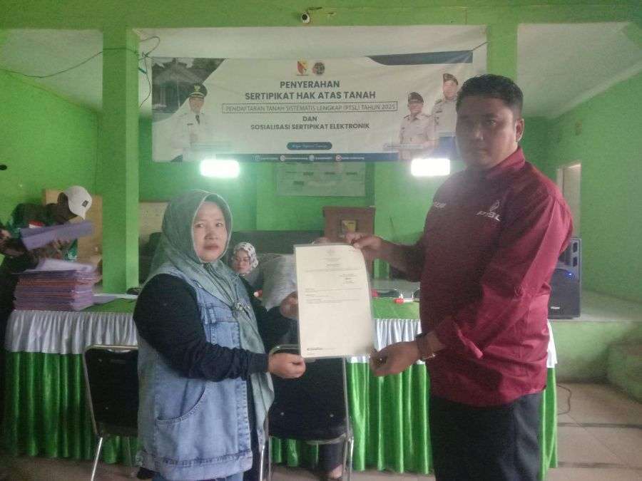 Kab.Bandung, Parahiangannews- Pemerintah Desa Mekarlaksana Kecamatan Ciparay bersama dengan Kantor ATR/BPN Kabupaten Bandung melaksanakan kegiatan pembagian sertifikat hak atas tanah melalui program PTSL (Pendaftaran Tanah Sistematis Lengkap). Kegiatan tersebut dilaksanakan di Gor Desa Mekarlaksana, Kamis(31/7/2025).