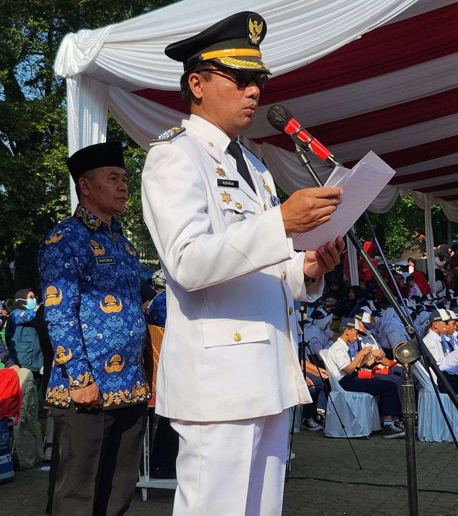 Camat Majalaya H Rofiran S.STP., M.si., yang menjadi inspektur upacara membacakan amanat Bupati Bandung Dr. HM. Dadang Supriatna, S.Ip., M.Si.,