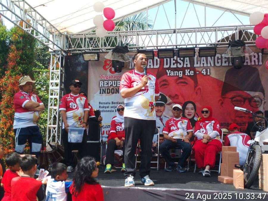 Dalam sambutannya, Camat Solokanjeruk Rahmatullah Mukti Prabowo mengatakan, ” pada hari ini saya menghadiri kegiatan peringatan HUT RI ke-80 Republik Indonesia tingkat Desa Langensari dan Milad ke-41 tahun Desa Langensari.