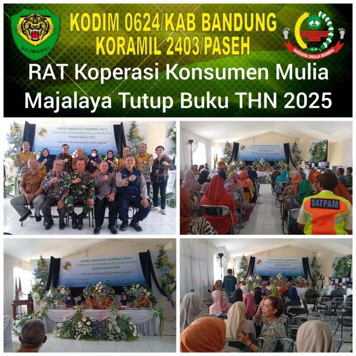 Kab.Bandung, Parahiangannews- Danramil 2403/Paseh Kapten Inf Mulyono beserta Babinsa Desa Cipaku menghadiri kegiatan Rapat Anggota Tahunan (RAT) Koperasi Konsumen Mulia Majalaya tahun buku 2025. Acara tersebut berlangsung di Aula Koperasi Kampung Ebah RT 01 RW 03 Desa Cipaku, Kecamatan Paseh,Sabtu (14/02/2026) .