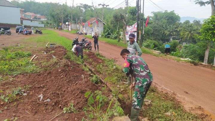 Kab.Bandung, Parahiangannews- Babinsa Desa Cihanyir Anggota Koramil 2402/Cicalengka Serma Uden Nandang bersama warga masyarakat di Kampung Cibiru RT 02 RW 04 Desa Cihanyir Kecamatan Cikancung Kabupaten Bandung melaksanakan kerja bhakti pembersihan selokan dalam rangka mengantisipasi banjir. Sabtu(28/2/2026).