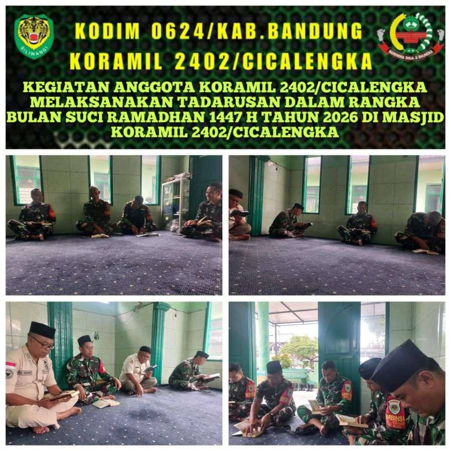 Kab.Bandung, Parahiangannews- Anggota Koramil 2402/Cicalengka melaksanakan kegiatan Tadarusan membaca Al Qur’an yang dilaksanakan di Masjid Koramil 2402/Cicalengka Jalan Raya Barat Cicalengka No.178 Desa Panenjoan, Kecamatan Cicalengka, Kabupaten Bandung, Jumat(6/3/2026).